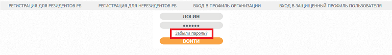 Далее для входа в профиль организации контактное лицо нажимает «Вход в профиль организации» и проходит по ссылке "Забыли пароль?":