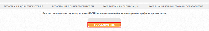 В случае возникновения необходимости восстановления логина и пароля, контактному лицу необходимо обратиться к администратору web-сервиса "Личный кабинет" и получить на e-mail указанный в профиле организации логин.