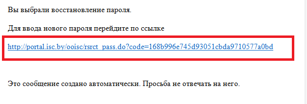 Если за время действия ссылки пароль не восстановлен, ссылку для восстановления пароля необходимо запросить повторно.