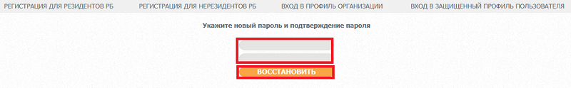Внести новый пароль и нажать кнопку "Восстановить":
