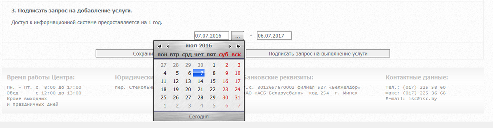 (права пользования АС "Электронная перевозка" предоставляются сроком на 1 год, дата окончания будет выбрана автоматически)