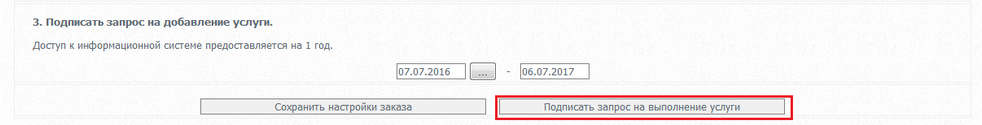 ШАГ 3. Подписать запрос на выполнение услуги.