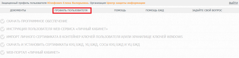 Для этого необходимо войти в защищенный профиль пользователя, используя действующий сертификат